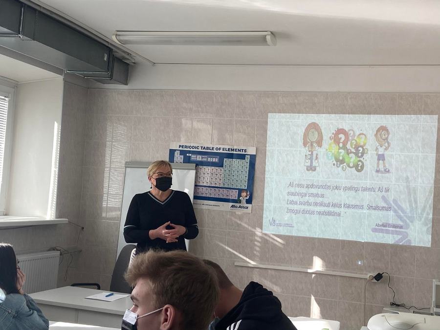 2022 03 25 IIIGA ir IVGA klasės moksleiviai vyko į Vilniaus agrotechnologijos fakultetą atlikti bandymų „Taninų kiekio nustatymas arbatžolėse“ ir Chlorofilo (a,b) koncentracijos nustatymas augalinėje žaliavoje“. Dėkojame dėstytojai Irenai Čerčikienei ir jos šauniai komandai už įdomius praktinius darbus. Moksleiviai tą pačią dieną turėjo galimybę pabūti ir tikrais studentais, apsilankė Veterinarijos Fakultete, susipažino su veterinarijos studijų programa, aplankė labai modernias auditorijas ir turėjo galimybę aplankyti fakultete esančią veterinarijos kliniką.