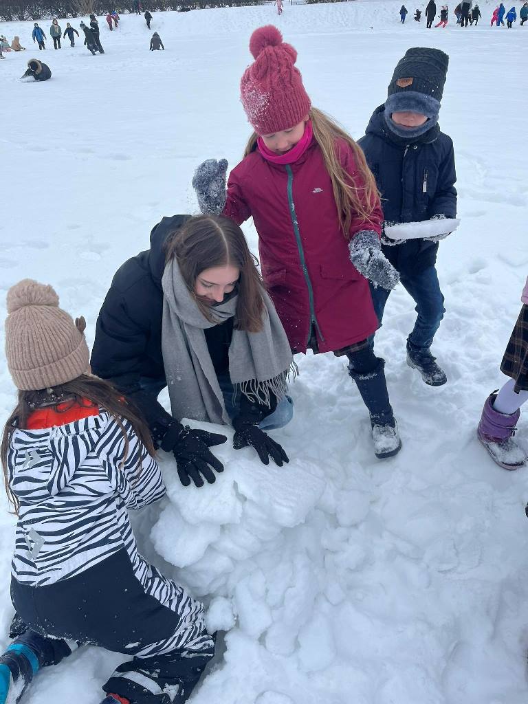 Mažieji kartu su mokytojais ir I-II gimnazinių klasių mokiniais statė sniego pilis, tvirtoves, smagiai žaidė gryname ore. Ačiū visiems, prisidėjusiems prie šio renginio.