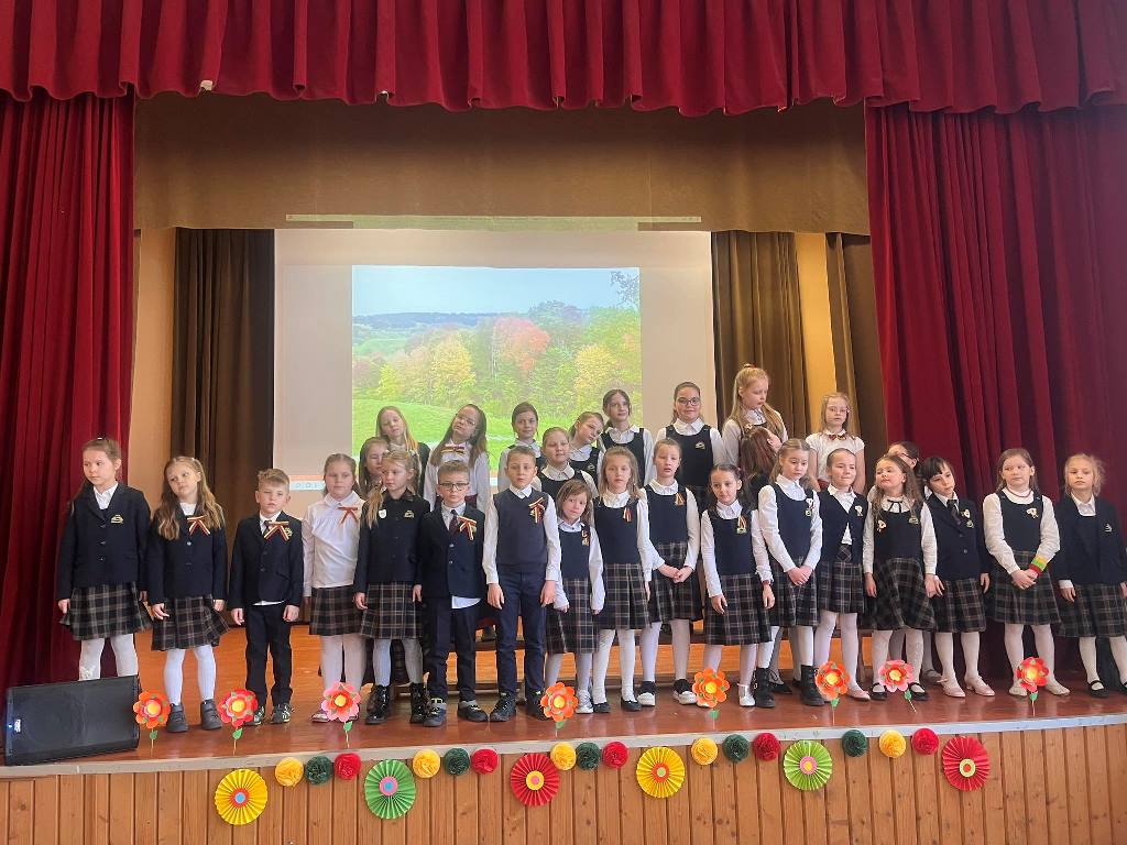 Kovo 8 d. gimnazijoje priešmokyklinės grupės vaikai ir pradinių klasių mokiniai minėjo Lietuvos Nepriklausomybės atkūrimo dieną. Renginį vedė 4c klasės mokiniai Erika Grigonytė ir Simonas Viselga. Mokiniai prisiminė Lietuvos kelią į nepriklausomybę, deklamavo eiles, dainavo dainas Lietuvai. Scenoje skambėjo gitaros garsai, griežė smuikas, sukosi šokėjai. Vaikų pasirodymai žavėjo nuoširdumu, šiluma. Susirinkusiuosius artėjančios šventės proga pasveikino gimnazijos direktorė Alicija Bilinska. Ji palinkėjo, kad meilė Tėvynei liepsnotų visų širdyse ir nuoširdžiai padėkojo mokytojoms už jų nenuilstamą triūsą, skiepijant mokiniams patriotizmo dvasią.