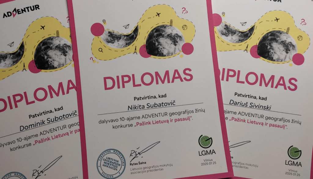 Šeštadienį, sausio 25d., 7c ir IIIgac klasės mokiniai kartu su geografijos mokytoja, dalyvavo nacionaliniame geografijos žinių konkurse „Pažink Lietuvą ir pasaulį“ ir Anventur turizmo parodoje. Mokiniai pagilino geografijos žinias, susipažino su įkvepiančiomis kelionių istorijomis iš viso pasaulio, Lietuvos regionais ir jų kultūriniais turtais. Mokiniams dėkojame už aktyvų dalyvavimą.
