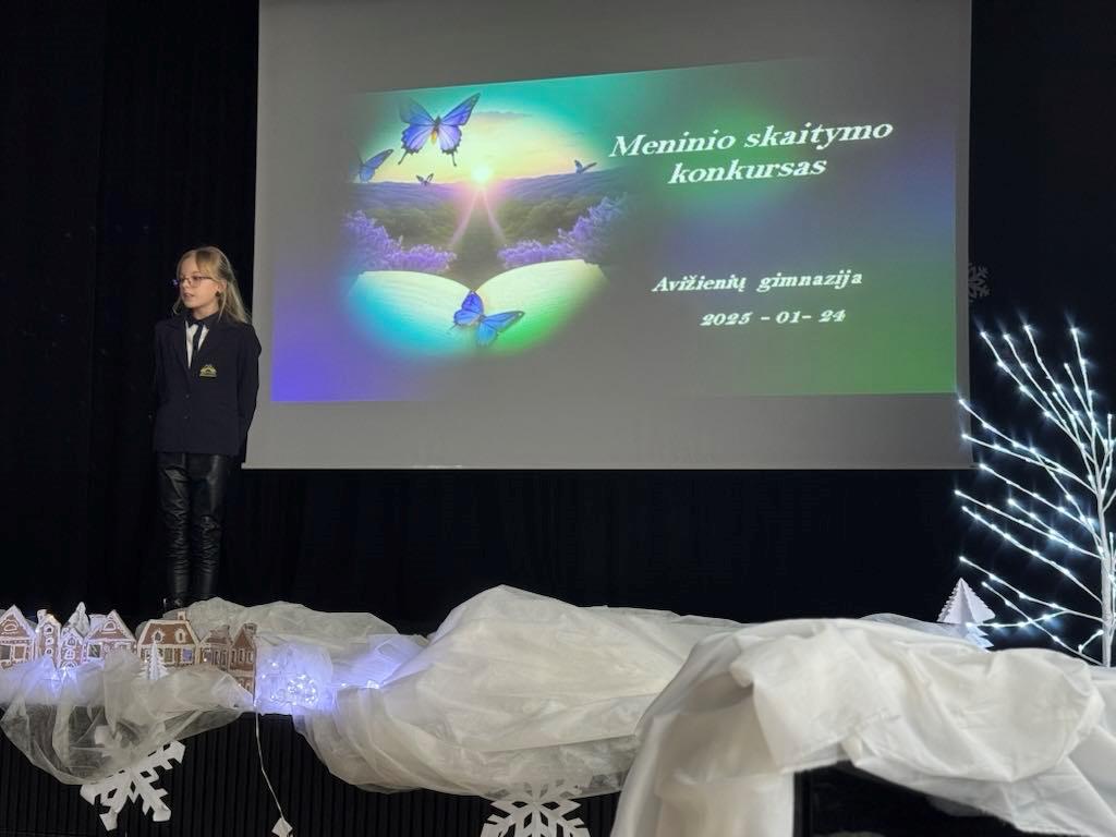 Sausio 24d. Avižienių gimnazijoje vyko Meninis skaitymo konkursas. Pagrindinis jo tikslas – skatinti mokinius plačiau domėtis literatūra, ugdyti ir puoselėti meninio žodžio suvokimą bei gebėjimą kūrybiškai perteikti teksto mintį ir emociją. Konkurse dalyvavo 5-8kl. ir I-IV gimnazijos klasių skaitovai.