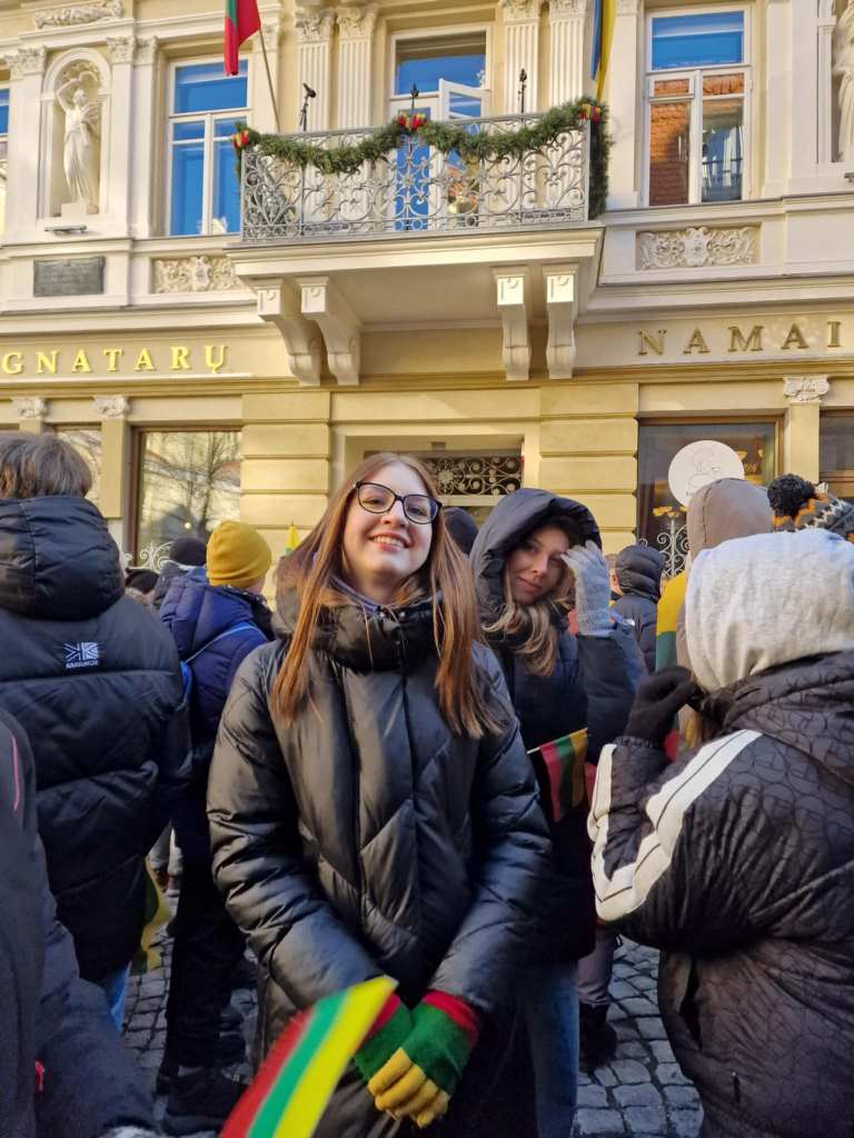 Vasario 16 d. gimnazinių klasių mokiniai dalyvavo tradicinėje jaunimo eisenoje, skirtoje paminėti Lietuvos valstybingumo atkūrimo ir Nepriklausomybės paskelbimo dieną
