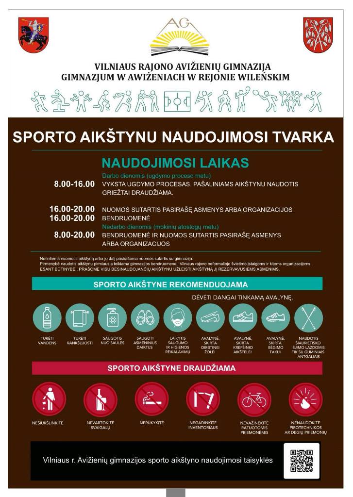 Primename Vilniaus r. Avižienių gimnazijos sporto aikštyno naudojimosi taisykles.