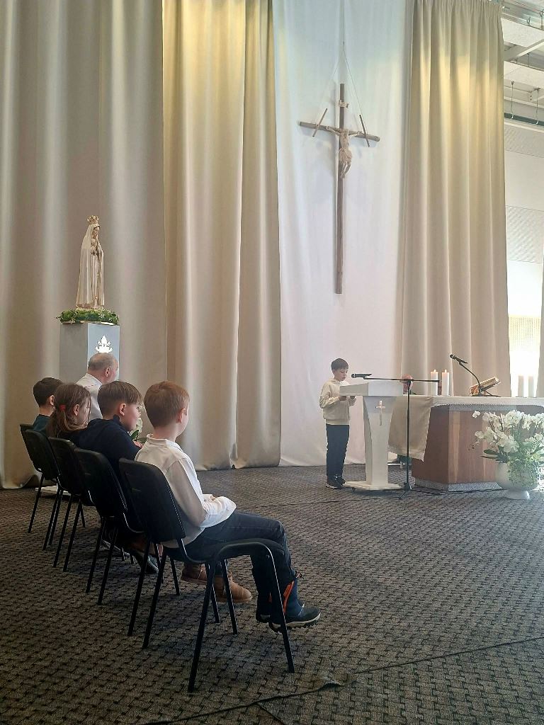 Mūsų gimnazijos pradinukai bendradarbiaujant su Vilniaus Šv. Jono Pauliaus II parapija ir kunigu Viktoru Kudriašovu ruošiasi Pirmosios Komunijos Sakramentui