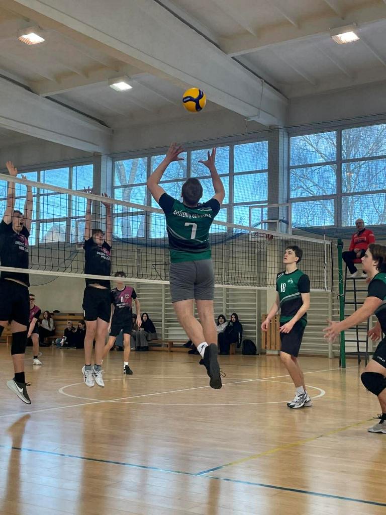 Vasario 17 d. mūsų gimnazijos vaikinų komanda demonstravo kovingumą J. I. Kraševskio gimnazijoje vykusiame tinklinio turnyre.