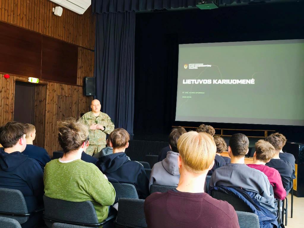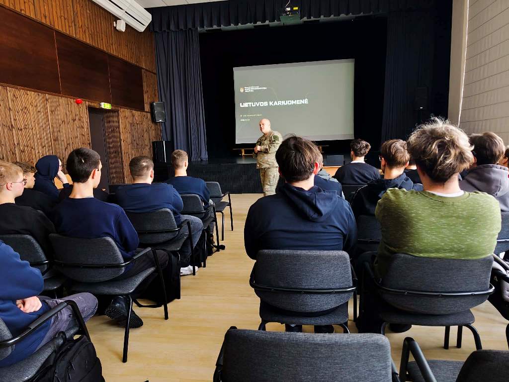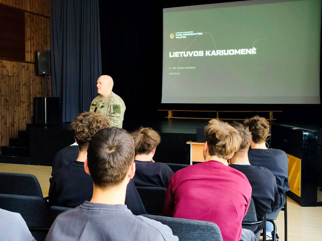 Pranešimo metu mokiniai sužinojo apie šaukimo į privalomąją karo tarnybą tvarką, tarnybos pasirinkimo galimybes, kariuomenėje įgyjamas patirtis bei karjeros perspektyvas. Taip pat buvo aptarta, kokių savybių ir įgūdžių reikia norint pasirinkti tarnybą Lietuvos kariuomenėje.