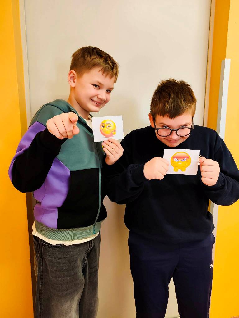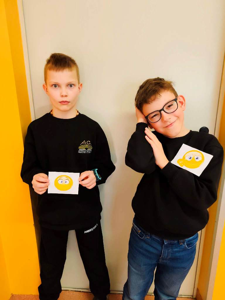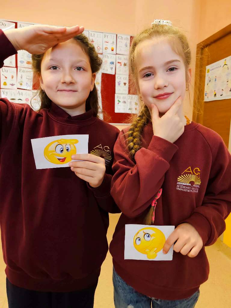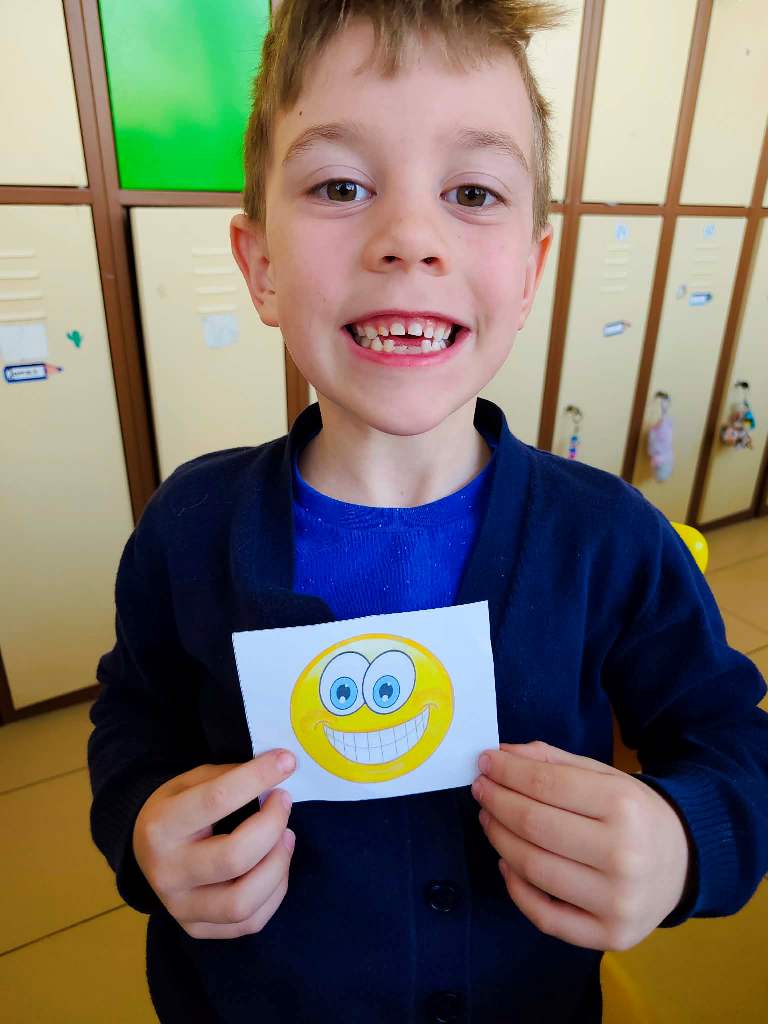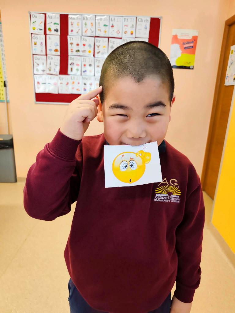 Šią savaitę mokykloje prasidėjo veiklos apie emocijas. Mokiniai susipažino su pagrindinėmis emocijomis ir mokėsi jas atpažinti bei išreikšti mimika, traukdami emocijų korteles.