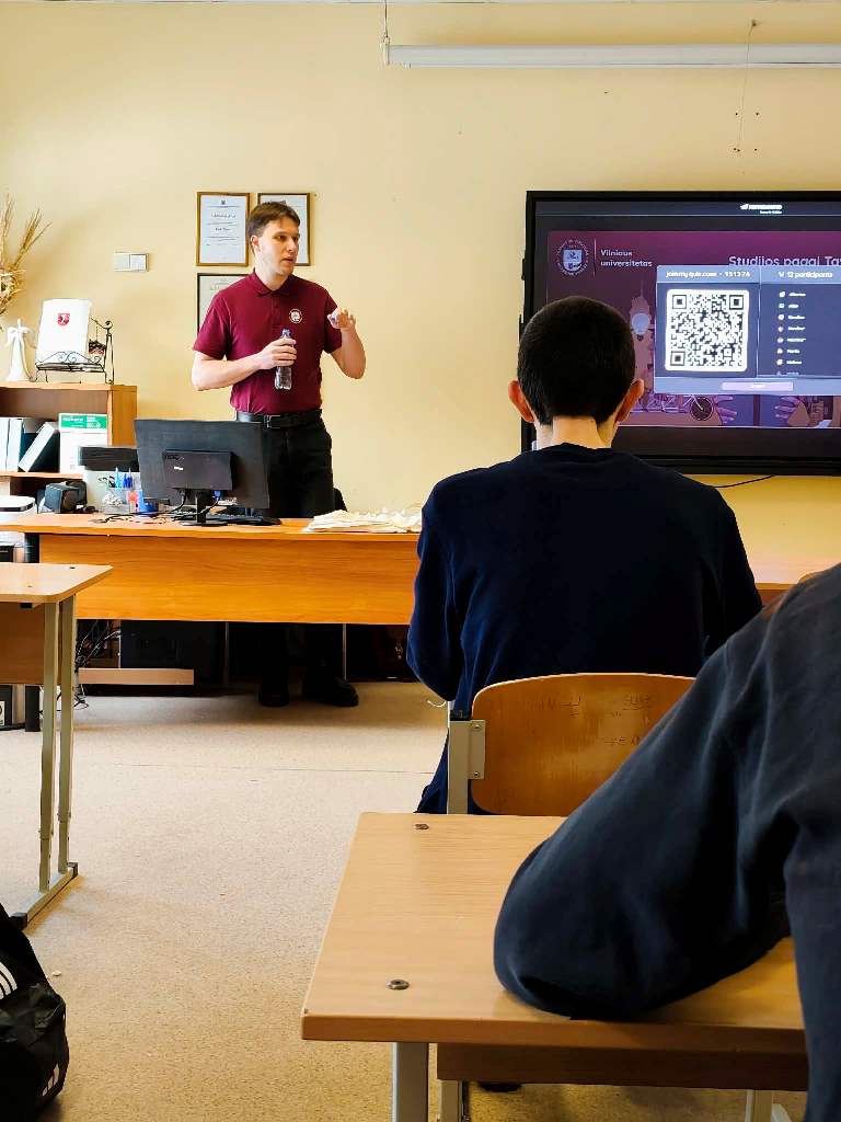 Kovo 4 dieną gimnazijoje vyko susitikimas su Vilniaus universiteto Ryšių su mokyklomis koordinatoriumi Evaldu Matijošaičiu. IIIga klasės mokiniai dalyvavo interaktyviame pristatyme, kurio metu buvo supažindinti su Vilniaus universiteto išskirtinumu, studijų galimybėmis bei priėmimo sistema. Susitikimo metu mokiniai sužinojo apie įvairias studijų kryptis, studijų organizavimą bei saviraiškos galimybes studijuojant universitete. Pranešėjas taip pat pasidalijo naudingomis įžvalgomis...Read More