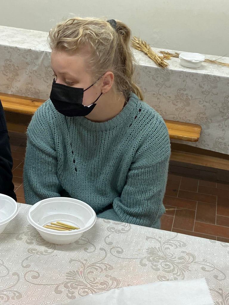 5A klasa na lekcji edukacyjnej „Ozdoby choinkowe ze słomy”