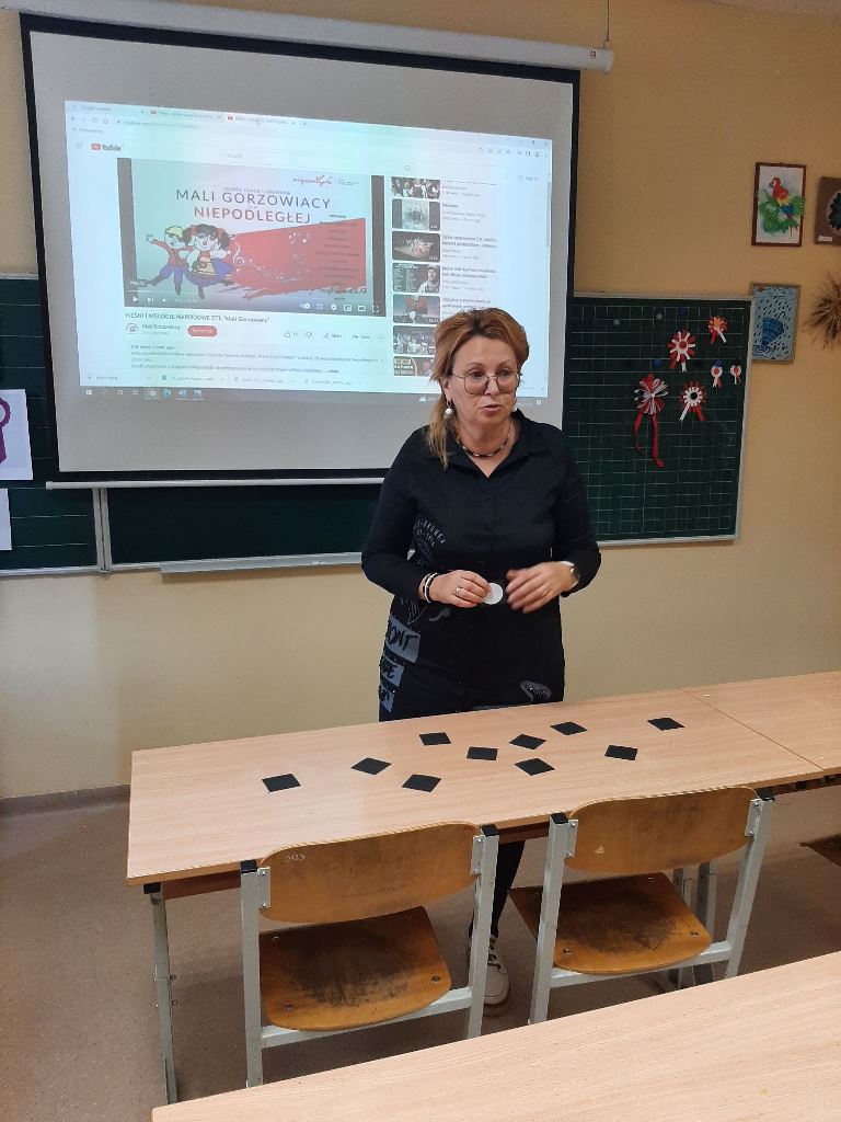 Podczas lekcji trwała dyskusja na temat patriotyzmu w szerszym tego słowa znaczeniu, były omówione symbole patriotyzmu w kontekście lekcji języka polskiego oraz plastyki, a także sposoby jego ukazania we współczesnym świecie. Uczniowie dyskutowali czym jest dla nich patriotyzm, czy są patriotami swego kraju ojczystego – Polski oraz kraju w którym się urodzili – Litwy. Rezultatem tej interesującej dyskusji były piękne prace twórcze – Orzeł Biały oraz kokarda narodowa – rozeta.