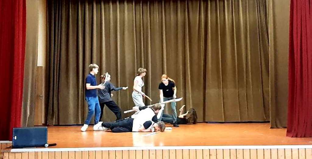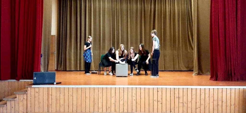 Na zakończenie projektu „Łączy nas przeszłość, jednoczy nas przyjaźń” uczestnicy zaprezentowali na scenie przygotowaną samodzielnie inscenizację teatralną opartą na wydarzeniach związanych z wybuchem powstania styczniowego. Autorami scenariusza byli wszyscy uczestnicy projektu. Samodzielnie tworzyli też scenografię i rekwizyty. Zebrani na widowni nagrodzili aktorów gromkimi brawami.