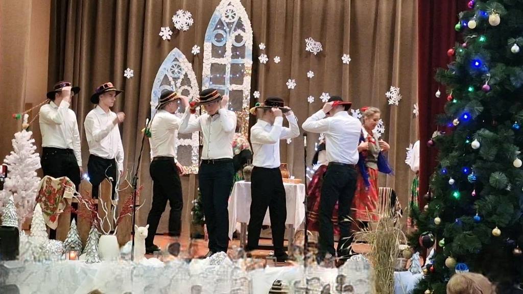 Maturzyści IV ga klasy zaprosili społeczność gimnazjum, nauczycieli i rodziców na świąteczne przedstawienie „Wigilia w naszej chacie”