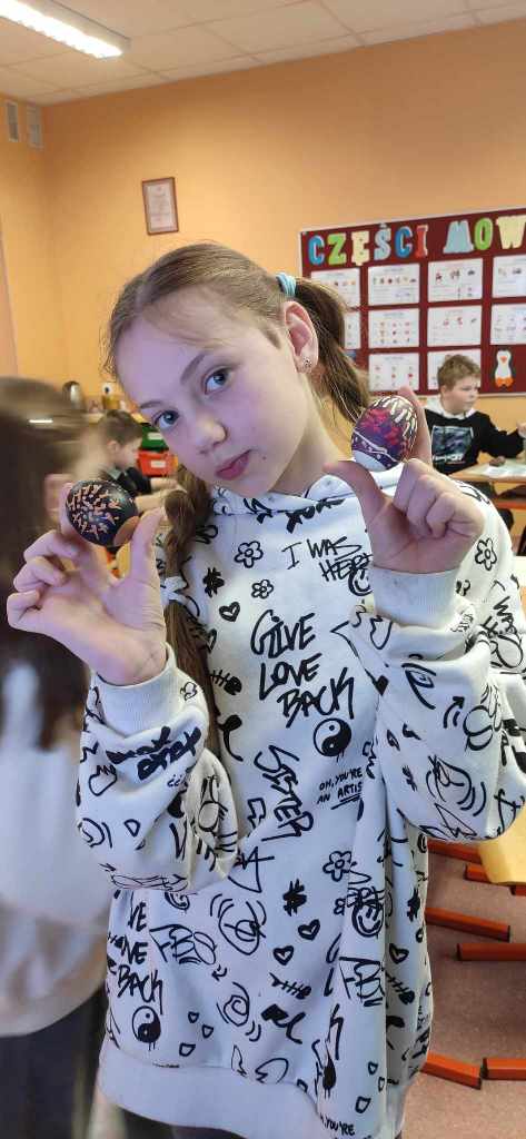 Uczniowie dowiedzieli się o podstawowych zasadach malowania pisanek i przekonali się, że malowanie woskiem wymaga sporo cierpliwości i skrupulatności.