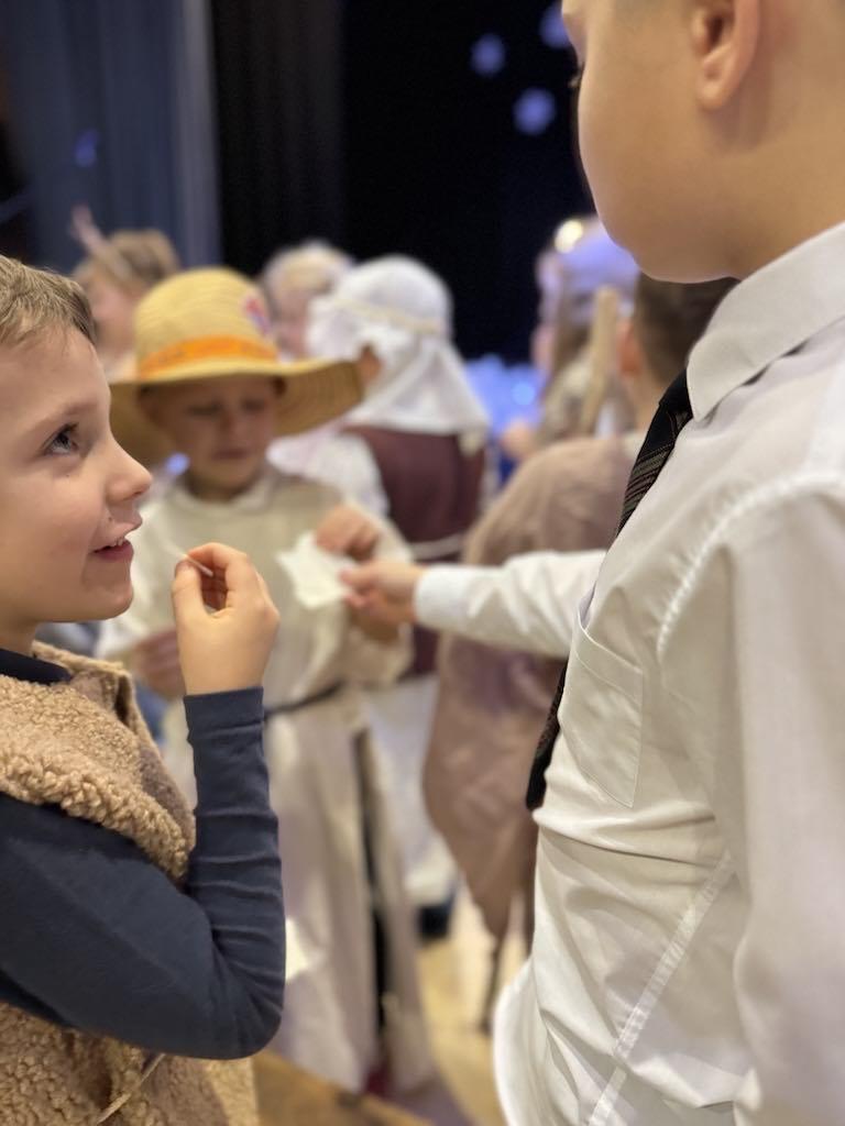 Jak co roku, uczniowie klas początkowych, spotkali się w auli, aby przypomnieć wydarzenia z okazji Bożego Narodzenia, przełamać się opłatkiem i złożyć życzenia z okazji nadchodzących świąt.