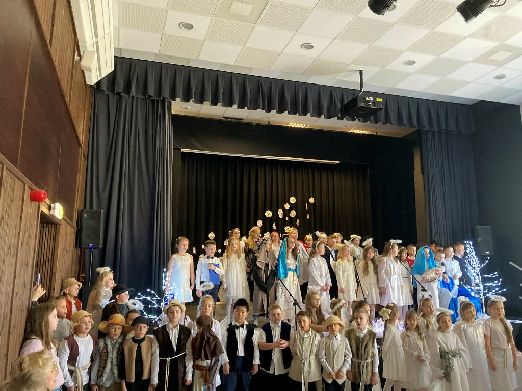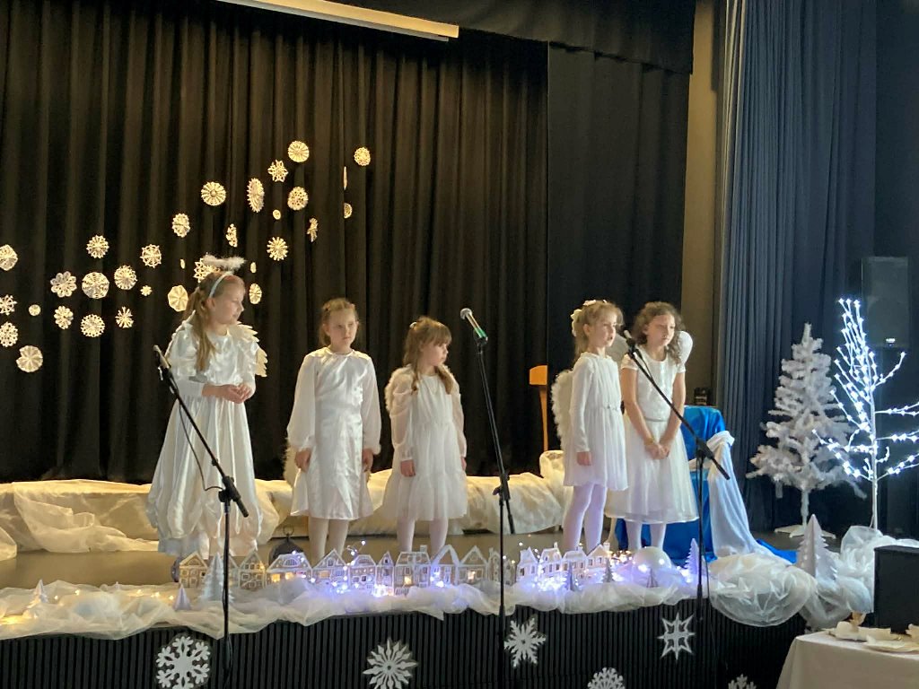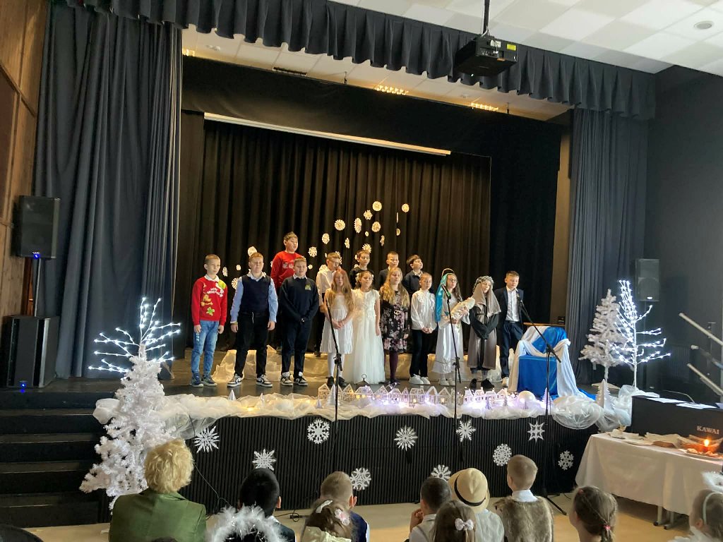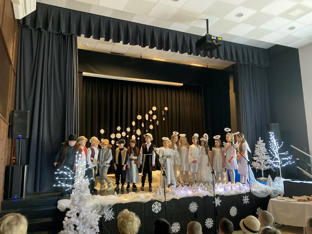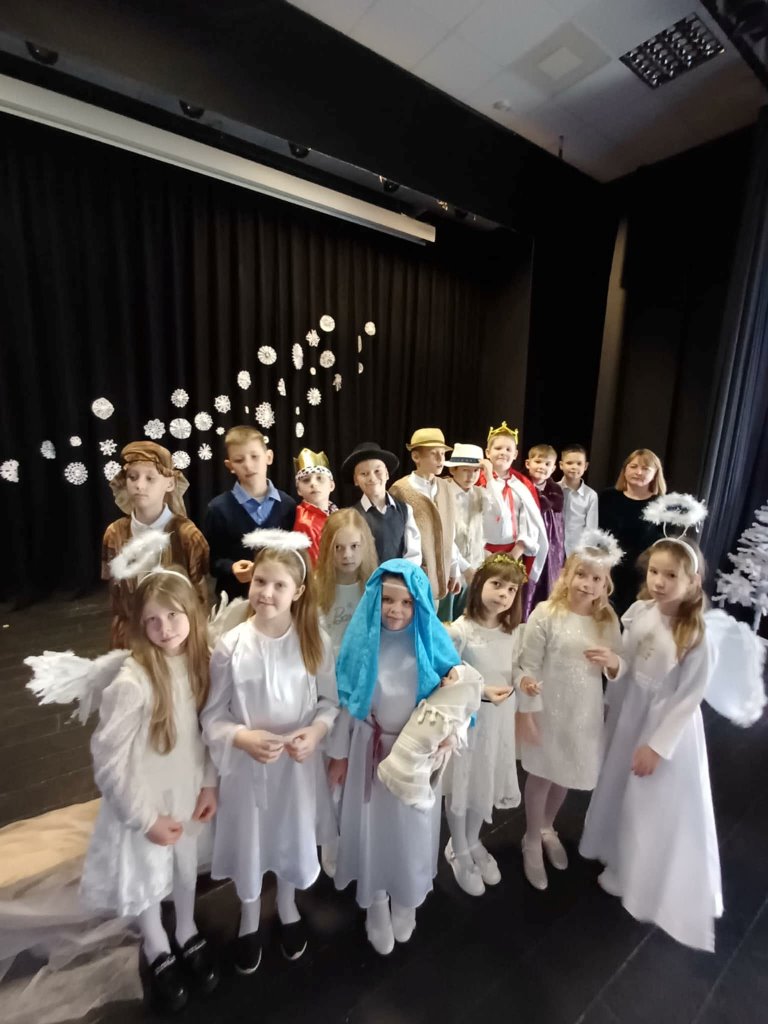 23 grudnia tradycyjnie odbyły się jasełka dla klas początkowych. Uczniowie każdej klasy chętnie wzięły udział w przedstawieniu bożonarodzeniowym. Zamienili się w pastuszków, aniołków, króli i Św. Rodzinę. Nie zabrakło także kolęd i łamania się opłatkiem.