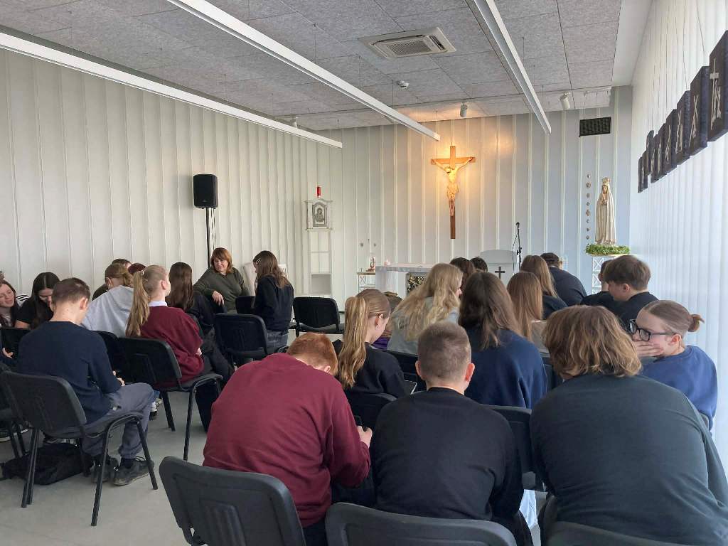 Ksiądz Marius i Wiktor udzielili chętnym sakrament pokuty i wygłosili konferencję o krzyżu Chrystusa. Uczniowie wzięli udział w drodze krzyżowej.
